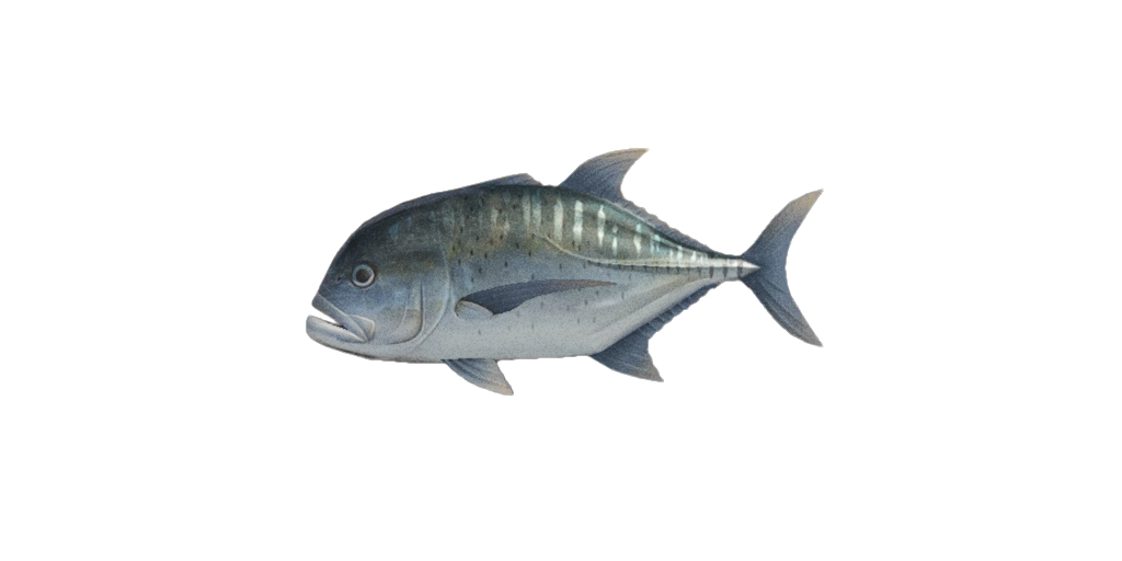The giant trevally, as befits its name, can reach six feet in length and 180 pounds! Its size and strength have made it a favored opponent for anglers since time immemorial. They are also ingenious hunters, sometimes taking advantage of other predators to distract their prey. There have even been documented cases of them attacking —gulp— birds.