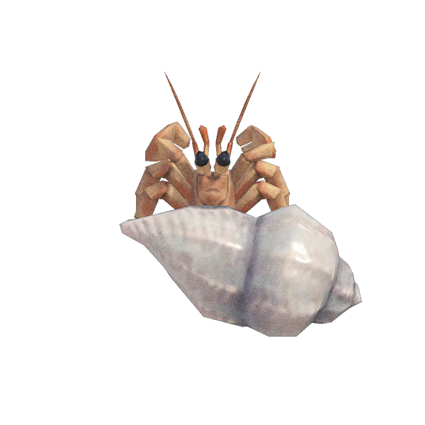 The hermit crab is not an insect… Though it most certainly resembles one. Blech! It looks much like a spider—what with its creepy eyes and crawly legs—but is, in fact, a crustacean. As such, the hermit crab has 10 legs and also wears a shell. But it doesn’t grow this shell itself. It slips its soft body into shells left behind by snails, you see, and moves into ever-larger ones as it grows. Talk about a strange way to make a home.