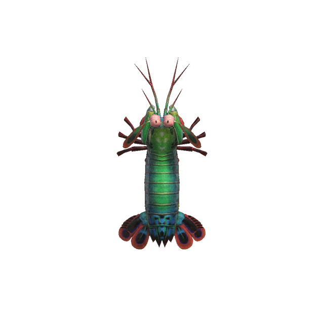 Think carefully before you mock the mantis shrimp for its diminutive size. I warn you, it’s itching for a fight! A pugilist through and through, this brightly hued fellow packs a punch unparalleled on land or sea. Not only are its forelimbs shaped like clubs and scythes, its arms are naturally spring-loaded too! Thus the mantis shrimp’s high-speed blows crack open crabs and oyster shells with ease. And should you grab it with your hands, you might discover why it’s called “the thumb splitter” too!