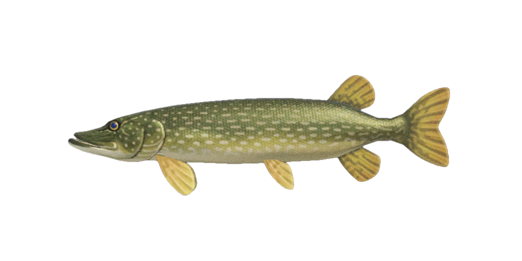 The pike has always reminded me a bit of salmon, although a pike can grow rather larger. These brutes can grow to over four feet long, sometimes MUCH over! Hoo hoo! It is carnivorous and preys not only on other fish, but also mammals and some waterfowl. If I were to ever meet one in the water, I would have a most difficult time keeping my wits about me.